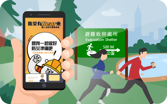 登入內政部消防署建置【防災有 Bear 來】個人化防災系統,查詢居家附近的避難收容場所